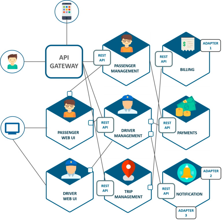 为了解决当前的业务痛点,这家打车公司参考了 Amazon、Netflix 等巨头公司的应用架构,最终将其巨石应用按照微服务的架构进行重新设计: